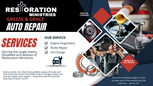 Empowering single moms, widows, and the disabled through free auto services and fellowship. Join our monthly Bible study and hands-on car care program every second Saturday — where faith meets function.