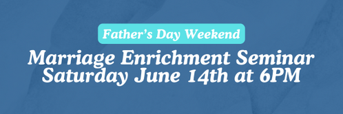 Strengthen your marriage and grow together in faith at our Marriage Enrichment Seminar on Saturday, June 14th, at 6:00PM.