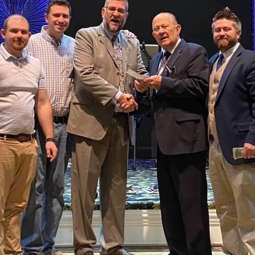 Pastor Ronnie Smith and Trustees presenting Missionary Mike Brown with a check to plant two churches in West Africa.